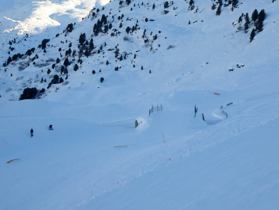 De verbindingspistes "ours" naar Méribel-Mottaret en de piste "bd cumin" naar Les Menuires zijn vrij vlak en hebben grotendeels het karakter van een sleepweg. - heel veel off-piste /Tiefschneegedeelten