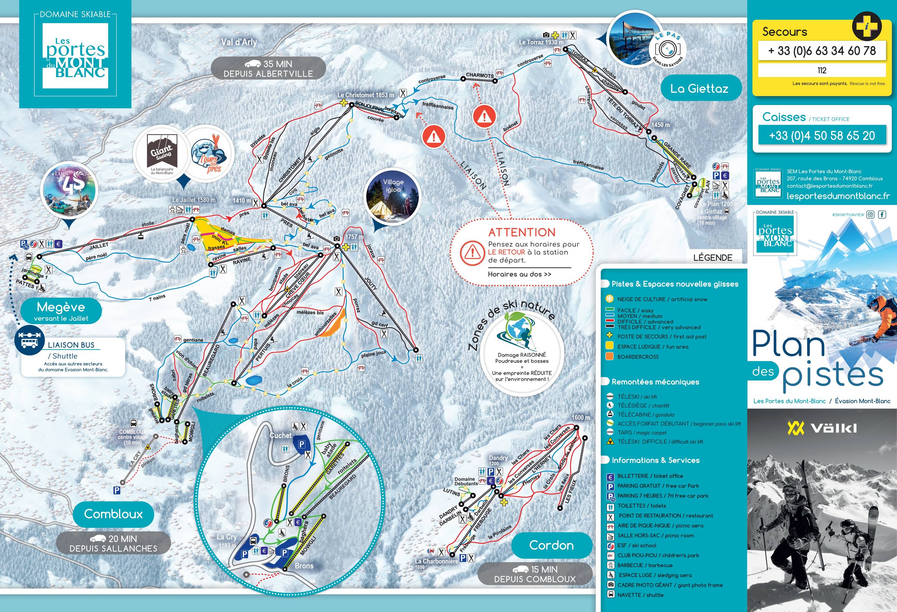 Pistekaart Les Portes du Mont-Blanc seizoen 2024/2025
