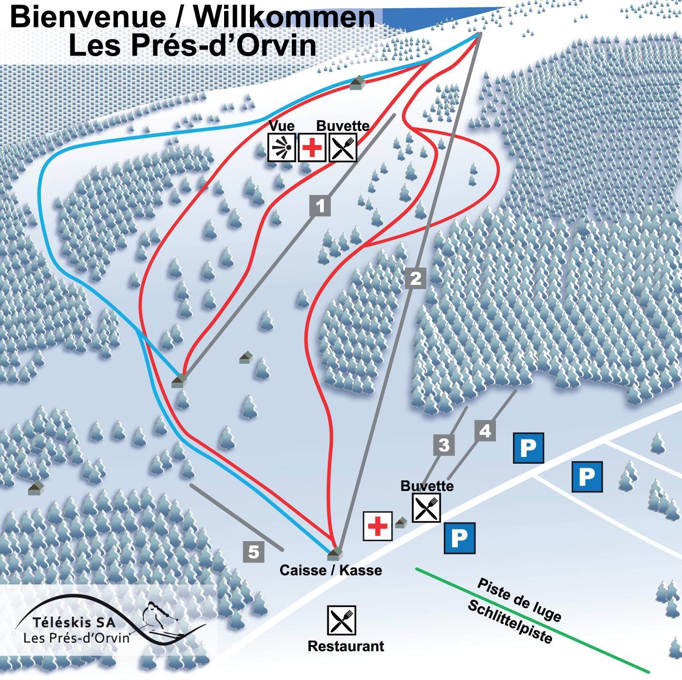 Pistekaart Les Prés d'Orvin seizoen 2025/2026