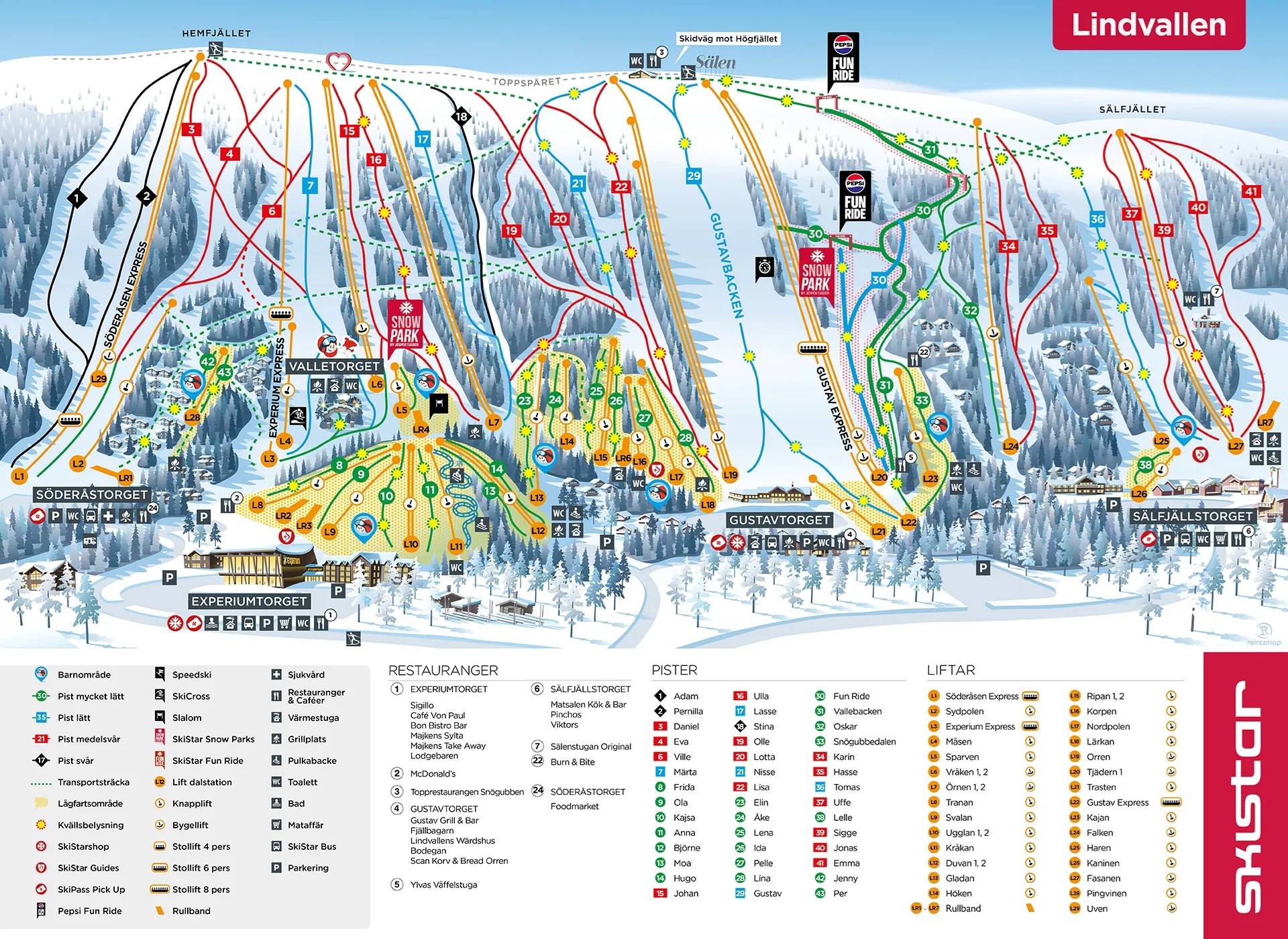 In het skigebied Lindvallen/Högfjället zijn alle pistes bewegwijzerd. Op verschillende punten vind je pistekaarten. Actuele informatie over geopende liften en pistes is te vinden bij enkele dalstations, online in de SkiStar-app of op de website van het skigebied.