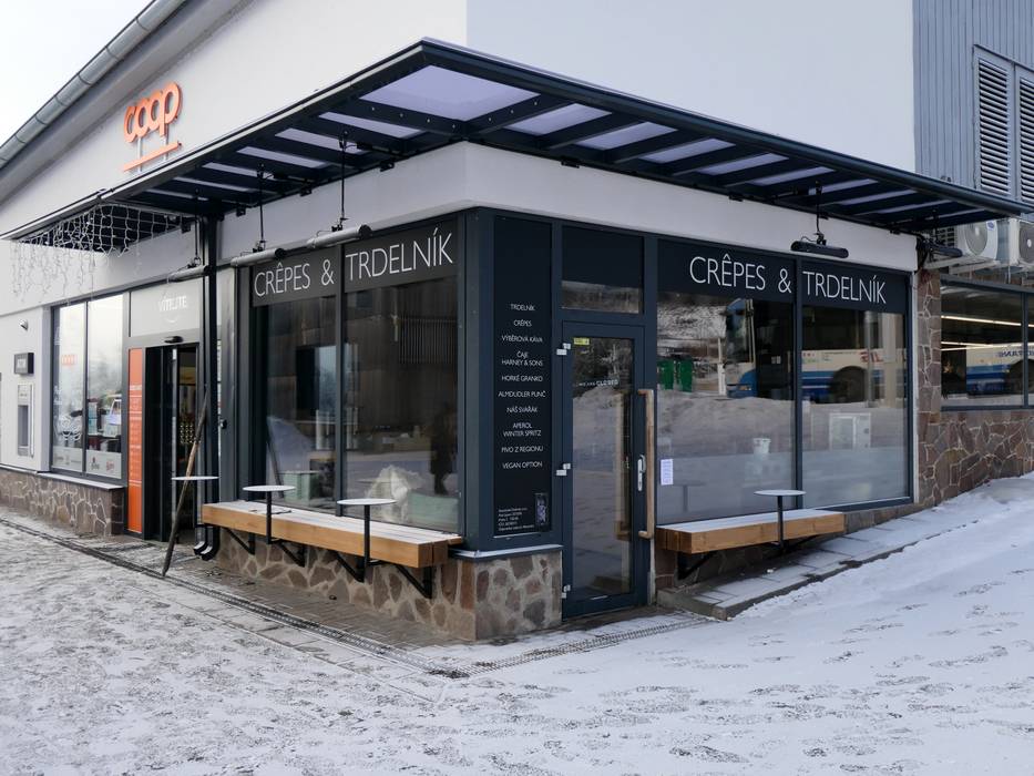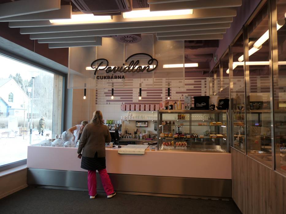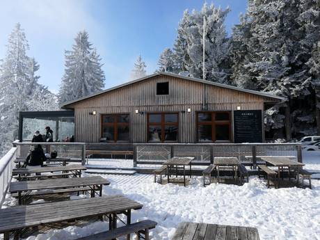 Midden in het skigebied en direct bij het dalstation zijn er tal van goede eetgelegenheden. Rondom het dalstation nodigen restaurants, een banketbakkerij en een Crêpes & Trdelník-stand uit om te genieten. Bij het bergstation en aan de achterzijde van het skigebied zijn er restaurants en een bistro.
