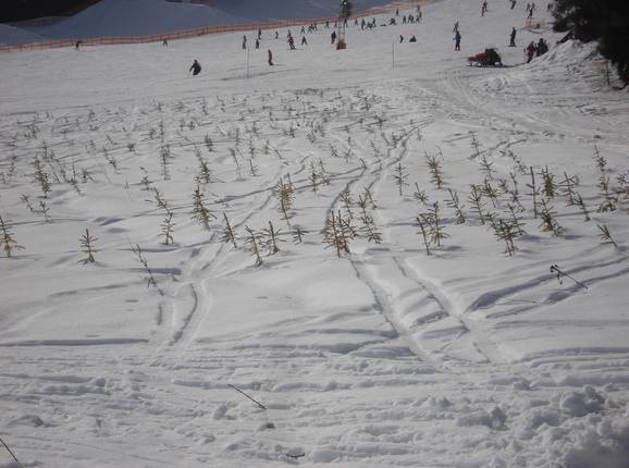 Men plant het bos weliswaar gedeeltelijk opnieuw aan, maar sluit deze gebieden niet af. Helaas worden in de skihutten sommige drankjes in plastic bekers geserveerd.
