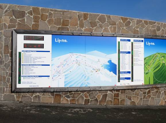 Oriëntatie (pistekaart, informatieborden, bewegwijzering piste) en veiligheid in het skigebied Lipno