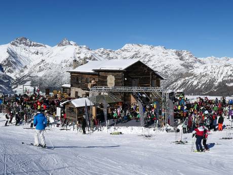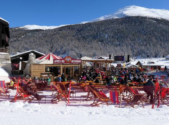 Livigno biedt enkele zeer goede après-ski-locaties bij de dalstations en in het skigebied. Zonneterrassen nodigen uit om te blijven hangen. In het dorp Livigno kun je terecht in tal van bars.