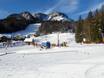 Het skikinderland biedt een transportband voor de eerste pogingen in de sneeuw. Daarna gaan ze verder met de oefenliften. In het skikinderland kunnen de kleintjes in alle rust leren skiën.