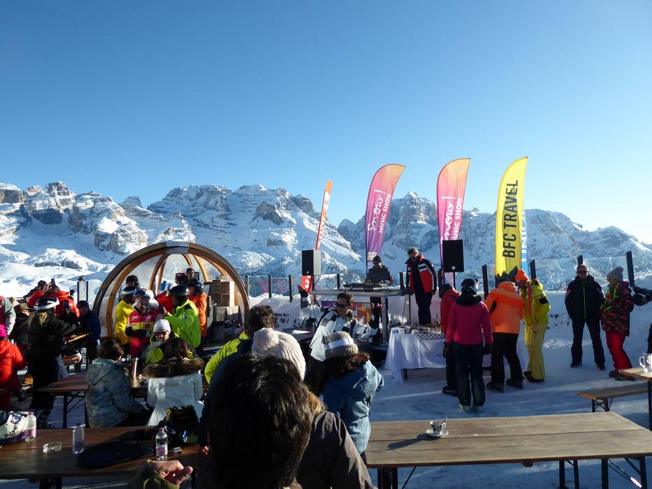 De après-ski bar bevindt zich midden in het skigebied van Folgàrida. Hier kun je vanuit een ligstoel genieten van het prachtige panorama van de Brenta Dolomieten en de skidag ontspannen afsluiten. Meerdere keren per week zijn goede muziek en een gezellige sfeer gegarandeerd.