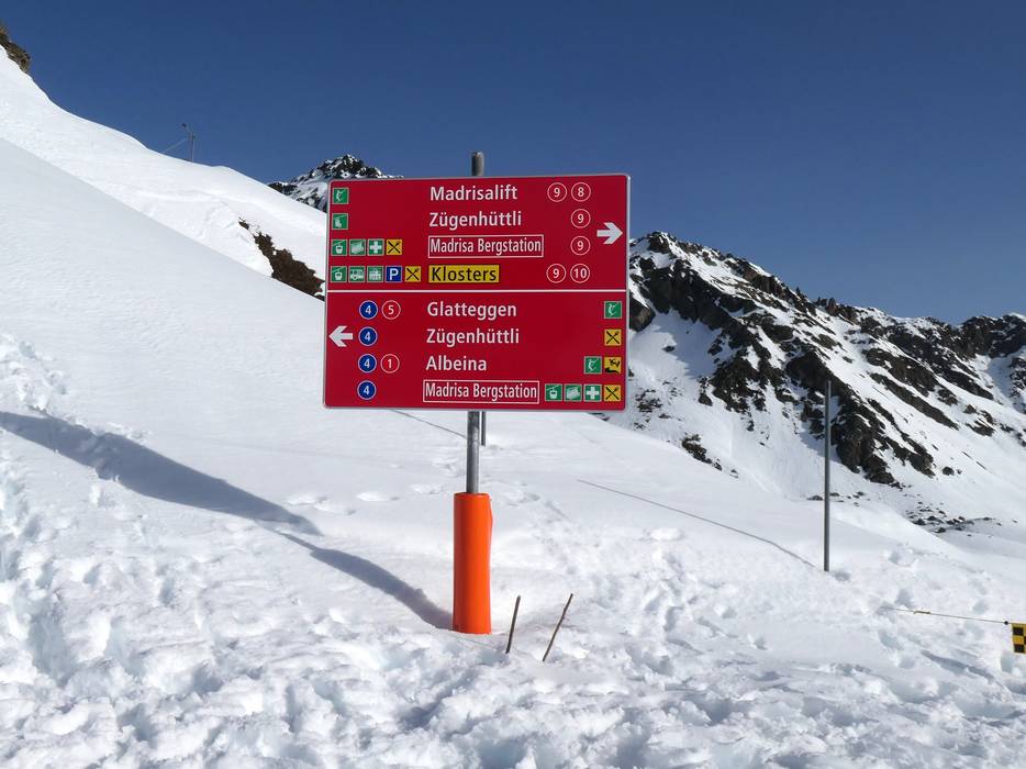 Oriëntatie (pistekaart, informatieborden, bewegwijzering piste) en veiligheid in het skigebied Madrisa (Davos Klosters)