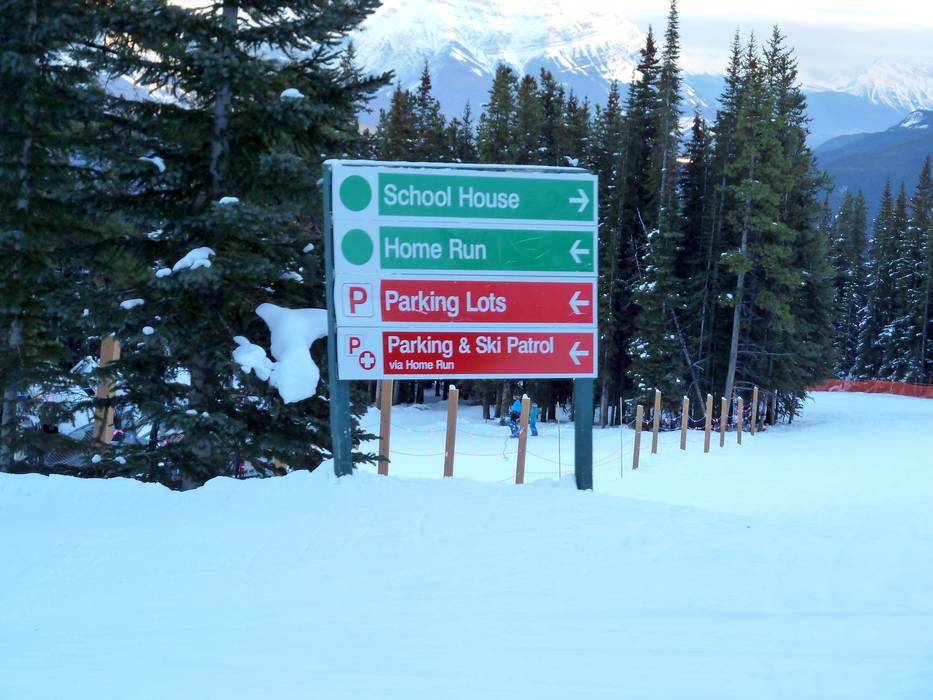 Oriëntatie (pistekaart, informatieborden, bewegwijzering piste) en veiligheid in het skigebied Marmot Basin – Jasper