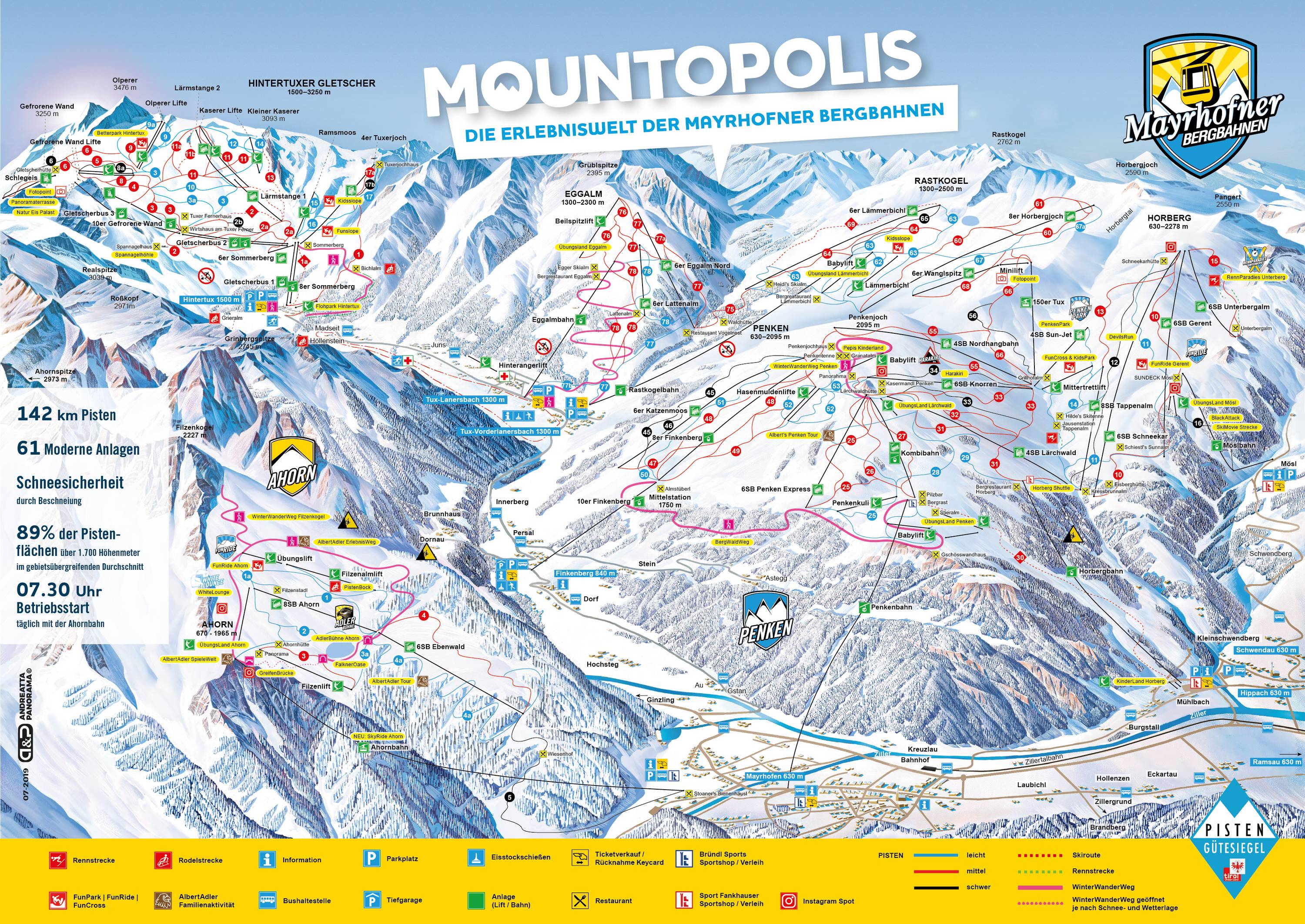 Pistekaart Mayrhofen – Penken/Ahorn/Rastkogel/Eggalm seizoen 2025/2026