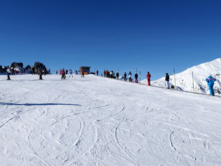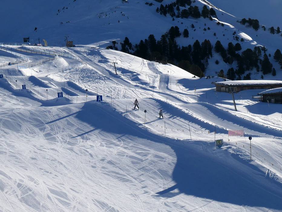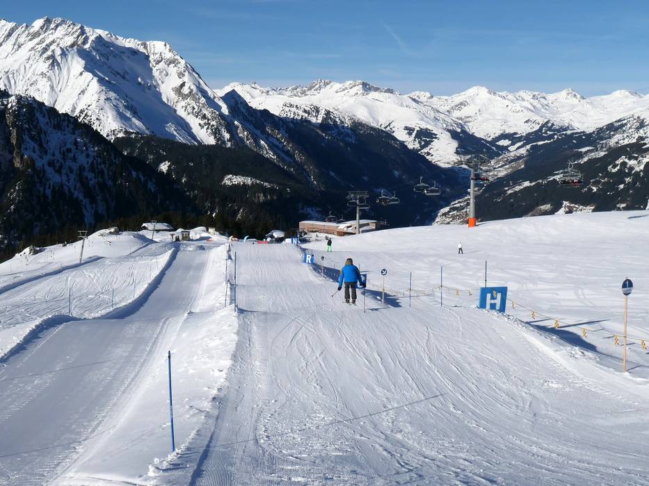 Bij het bergstation van de Rastkogelbahn kunnen beginners starten in het oefengebied.