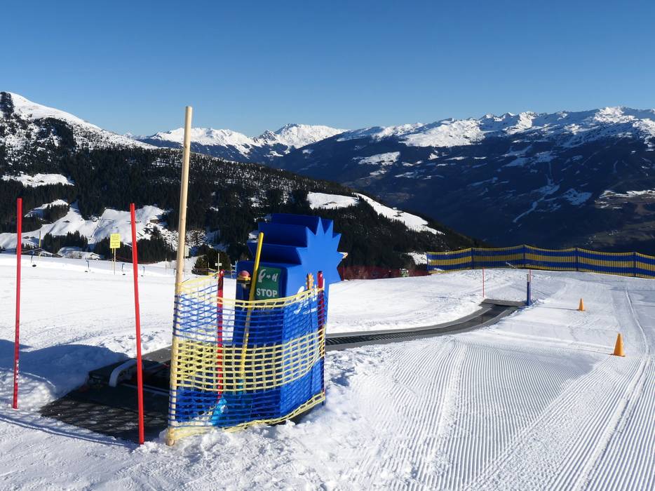 De skischool Fankhauser uit Hippach biedt bij het bergstation van de Horbergbahn een Kinderland aan.