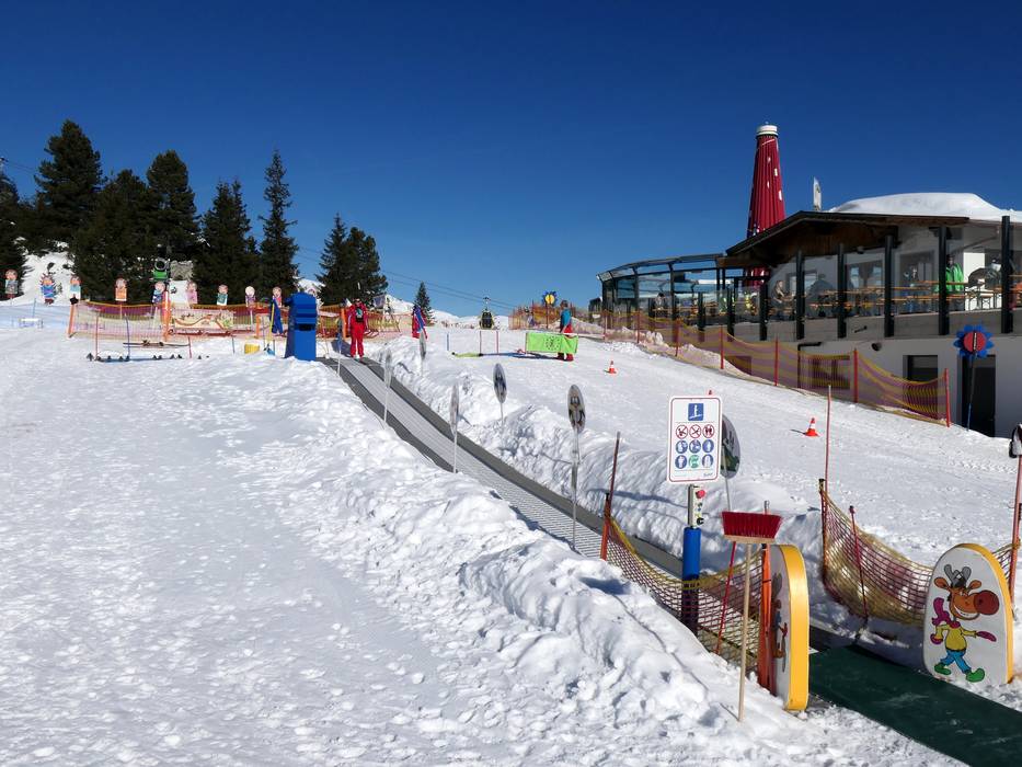 Luggi's Skischule runt bij het bergstation van de Rastkogelbahn een Kinderland.