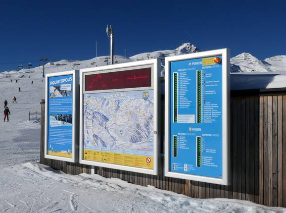 Het pisteplan is overzichtelijk vormgegeven. Alle belangrijke punten zoals hutten, highlights en belevenissen, bushaltes en parkeermogelijkheden zijn aangegeven. Alle Mountopolis-belevenissen worden uitstekend beschreven. Daarnaast worden in de folder meerdere interessante routes door het skigebied uitgelegd. Op sommige plekken is het lastig om de hellingsrichting van een afdaling te herkennen. Vooral bij verbindingsstukken zorgt dit voor wat verwarring.
