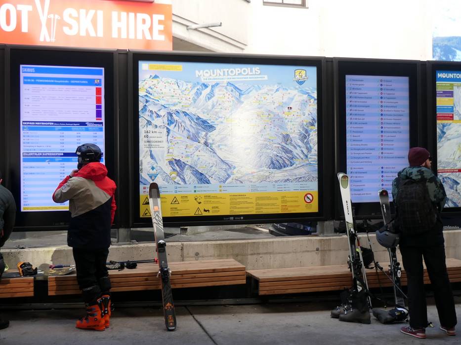 Oriëntatie (pistekaart, informatieborden, bewegwijzering piste) en veiligheid in het skigebied Mayrhofen – Penken/Ahorn/Rastkogel/Eggalm (Mountopolis)