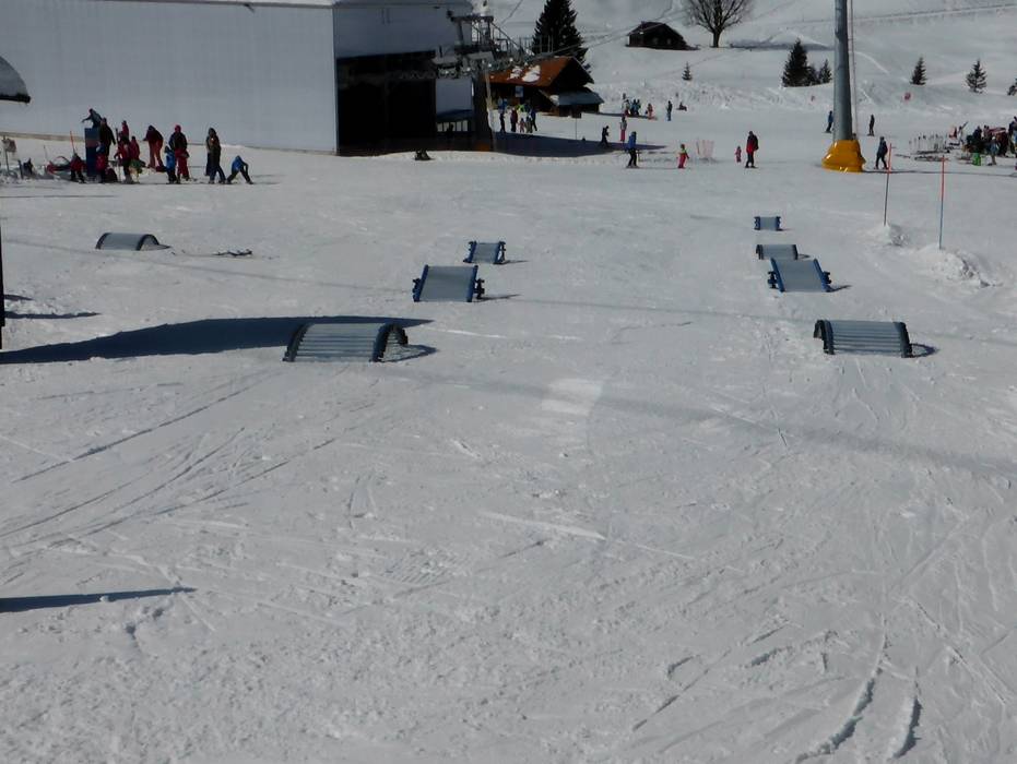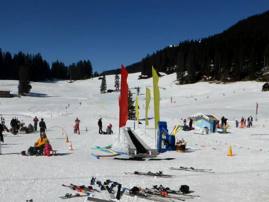 Het uitstekende oefenterrein van de skischool ligt centraal in het skigebied en is gemakkelijk te bereiken. Hier zijn er voor de kinderen onder andere kinderskiliften, transportbanden, golvende pistes en een draaimolen beschikbaar. Voor snowboardbeginners is de snowboardlift, die exclusief voor snowboarders is, een bijzonder hoogtepunt. De kinderen kunnen zich vermaken in het iglodorp en klimmen op de glijbaantoren. ’s Middags en in het weekend is het Skihäsliland ook geopend voor niet-deelnemers aan de skicursus. Bij het Skihäsliland bevinden zich twee restaurants (Familierestaurant Bidmi en het Bärgbeizli Bidmi), waar de kinderen speciale lunchaanbiedingen krijgen.