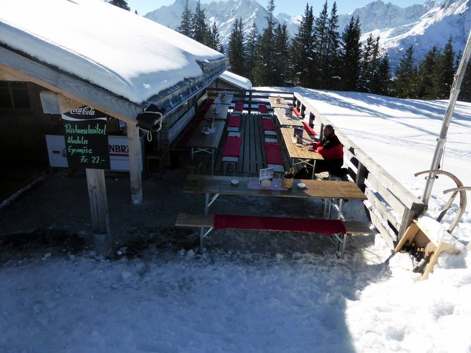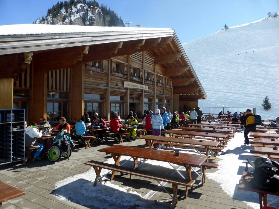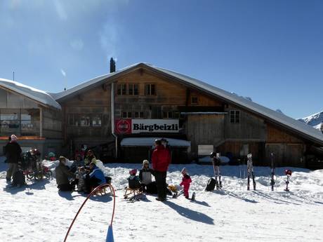 Het restaurant Bärgbeizli ligt midden in het skigebied bij het gondelstation Bidmi.