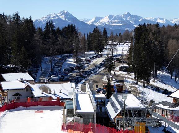 Het skigebied Meran 2000 ligt boven Meran in het Meraner Land. De reis vanuit het noorden verloopt ofwel via het Vinschgau of via Bozen. Vanuit het zuiden gaat de reis altijd via Bozen. Bij het dalstation van de Ifinger kabelbaan aan de rand van Meran kun je gratis parkeren. Met de kabelbaan ga je comfortabel omhoog naar het skigebied. Je kunt ook verder rijden tot het dalstation Falzeben en met de achtpersoons gondelbaan het skigebied binnenkomen. Een bergweg leidt via Hafling tot aan Falzeben op meer dan 1600 m hoogte. Hier zijn de parkeerplaatsen echter betaald.