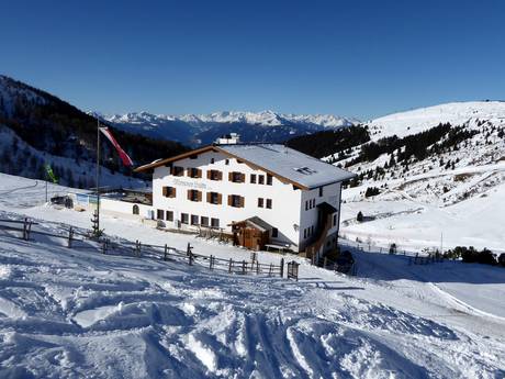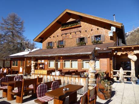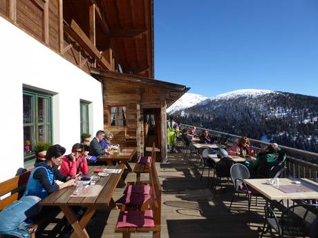 Het skigebied Meran 2000 blinkt uit met authentieke en gezellige berghutten. Zuid-Tiroolse specialiteiten en grote zonneterrassen nodigen uit om te blijven hangen. De horecagelegenheden zijn gelijkmatig over het hele skigebied verspreid.
