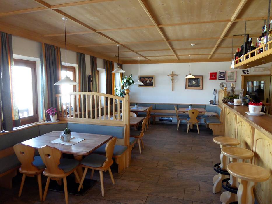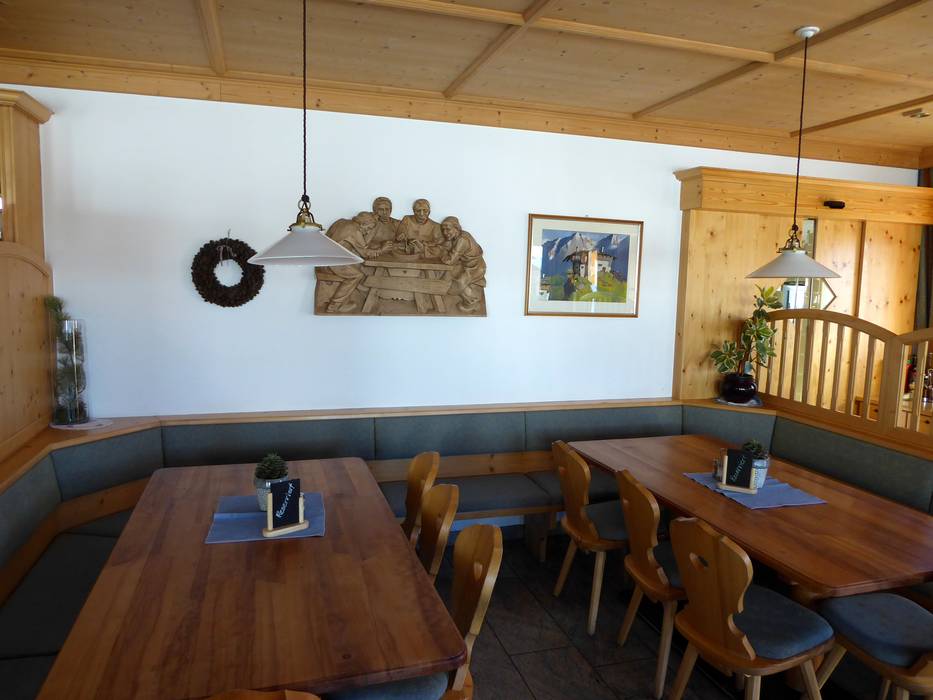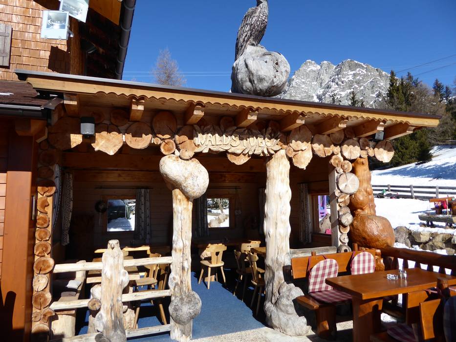 De Waidmannalm biedt gezellige stube en een groot zonneterras. Zuid-Tiroolse specialiteiten en een goede wijnselectie laten het hart van fijnproevers sneller kloppen.