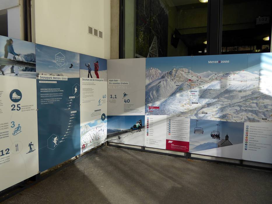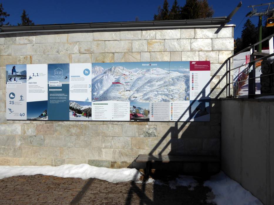 In het skigebied Meran 2000 zijn de pistes goed bewegwijzerd en op de belangrijke punten vindt men actuele informatie. Digitale displays bij het dalstation in Meran en in de kabelbaan bieden extra informatie.