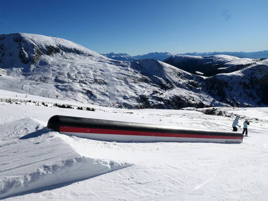 Het skigebied Meran 2000 biedt een mooi snowpark aan bij de Oswaldpiste.