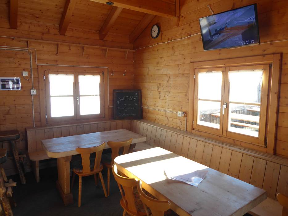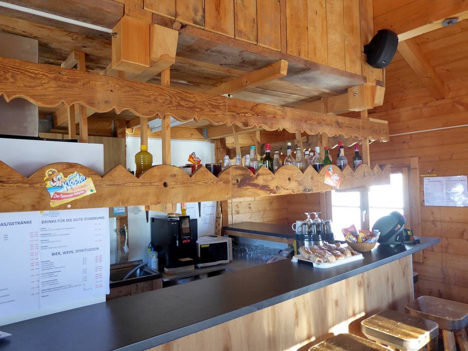 De gezellige skihut biedt drankjes en snacks. De specialiteit is de "Auntaburger". Een knus zonneterras maakt het aanbod compleet.