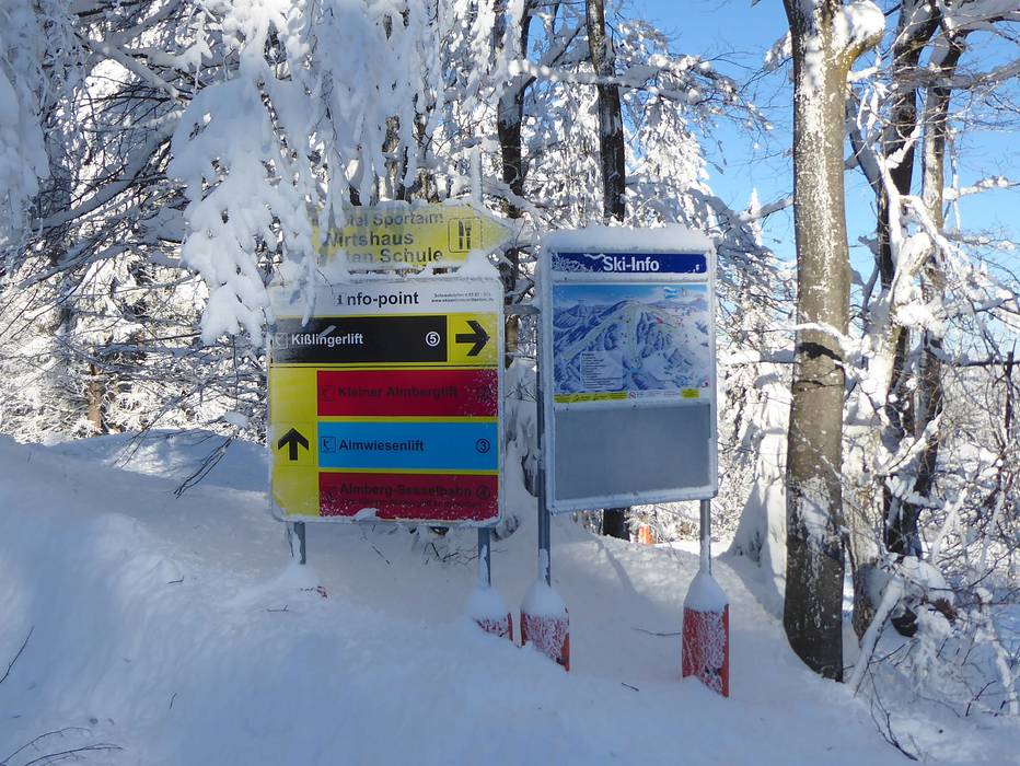Oriëntatie (pistekaart, informatieborden, bewegwijzering piste) en veiligheid in het skigebied Mitterdorf – Almberg