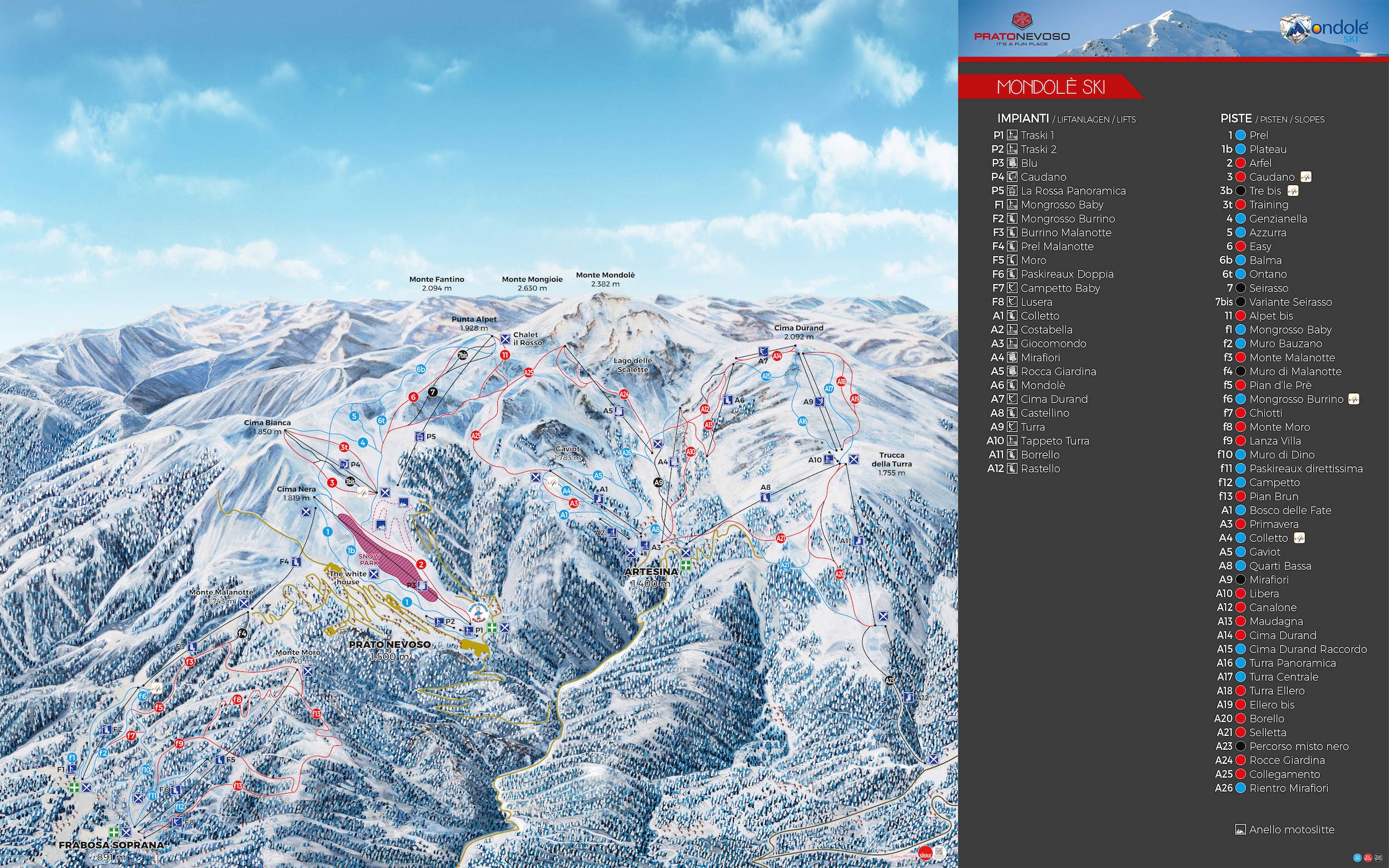 Pistekaart Mondolè Ski – Artesina/Frabosa Soprana/Prato Nevoso seizoen 2025/2026