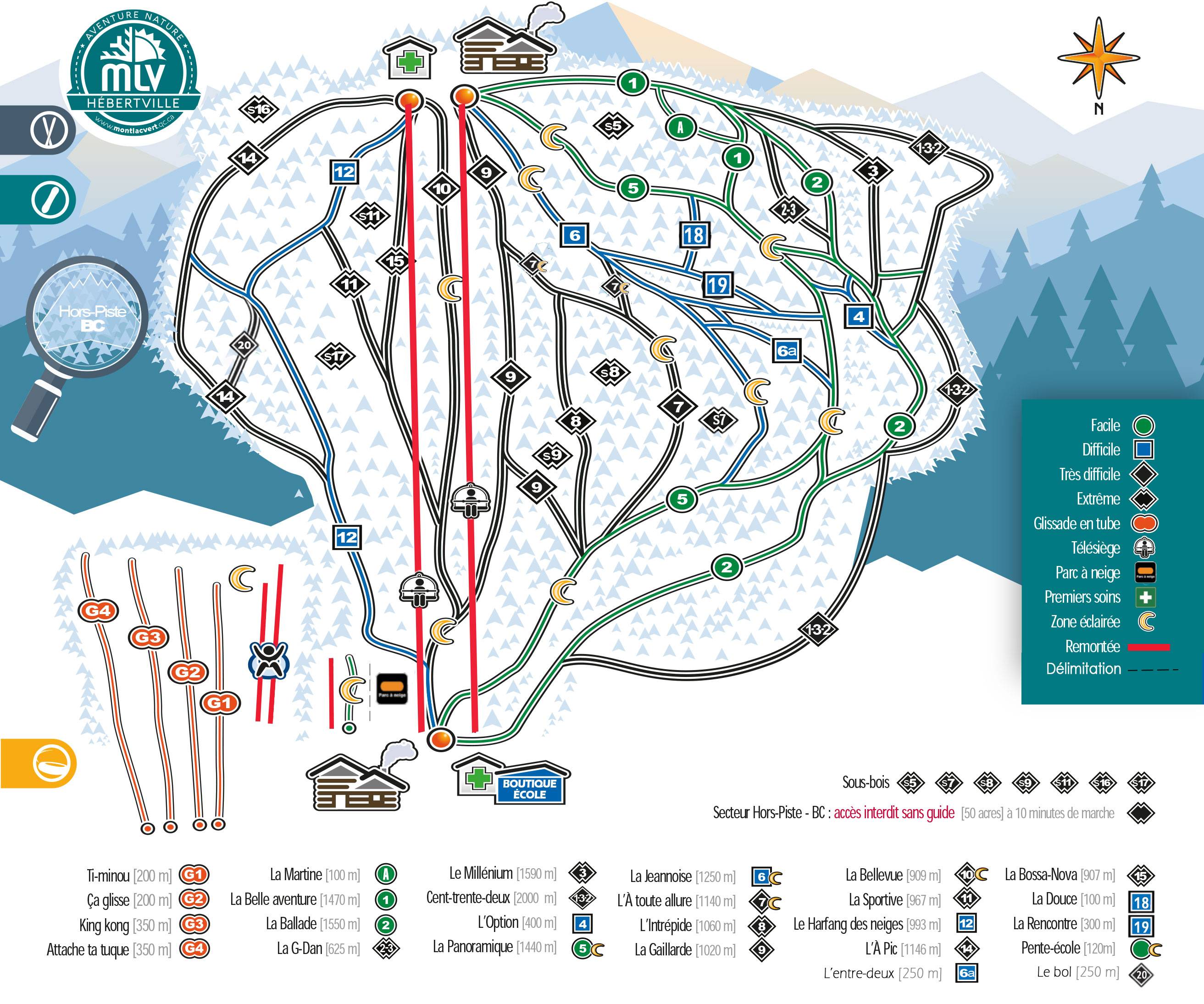 Pistekaart Mont Lac-Vert – Hébertville seizoen 2025/2026