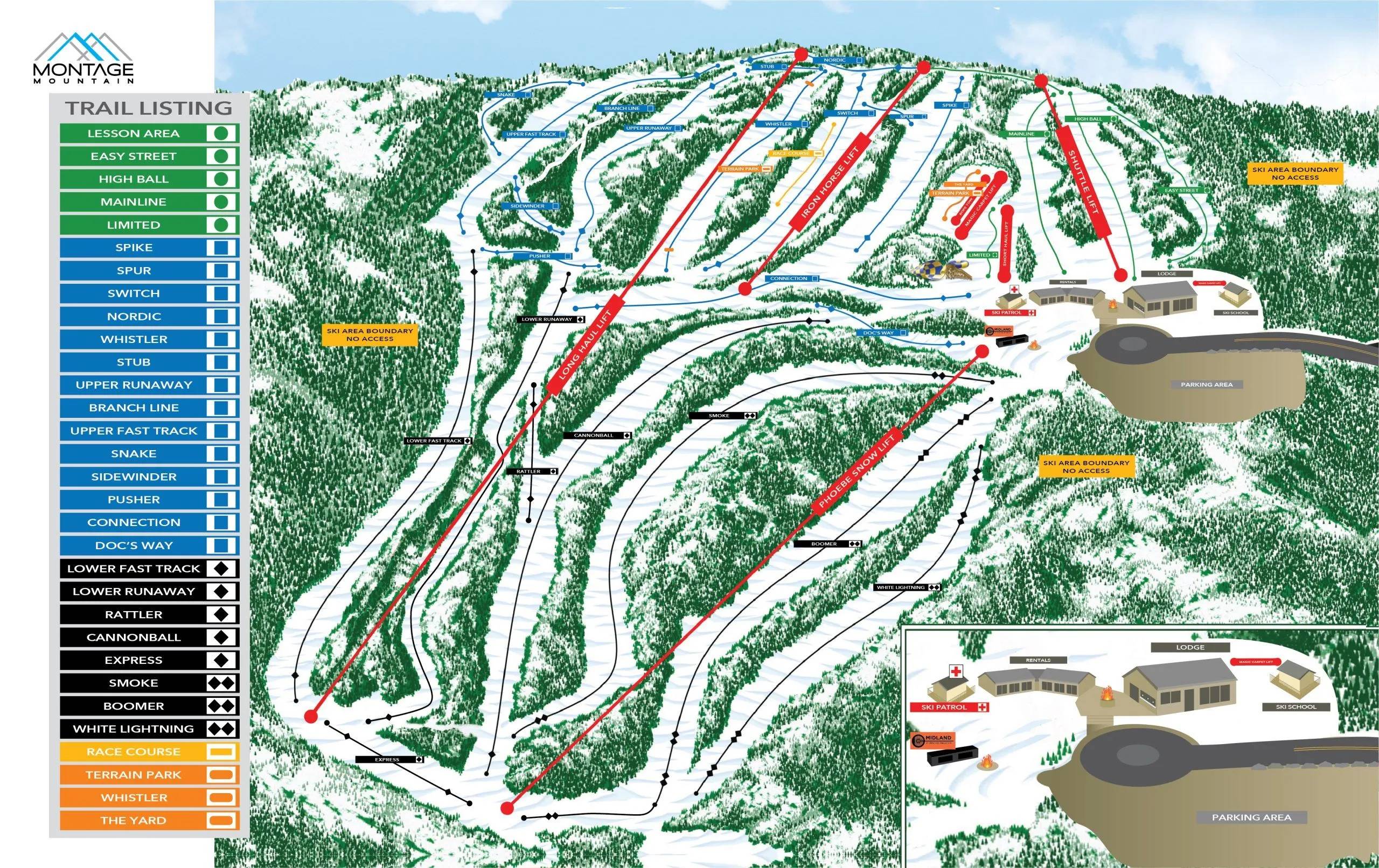 Pistekaart Montage Mountain Resort seizoen 2025/2026