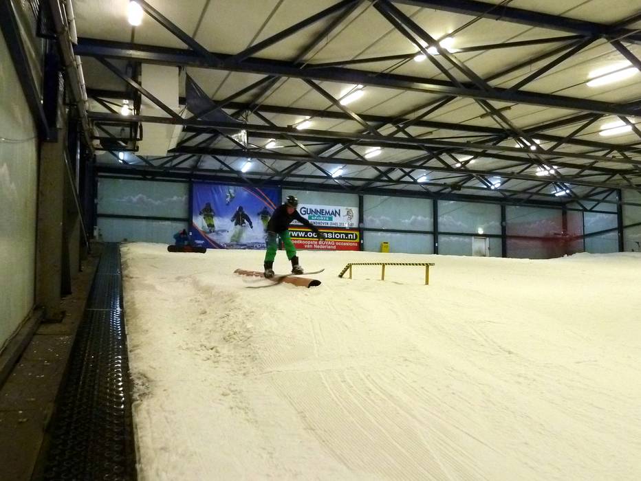 In de hele skihal van het Montana Snowcenter is het snowpark verspreid.