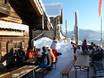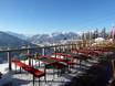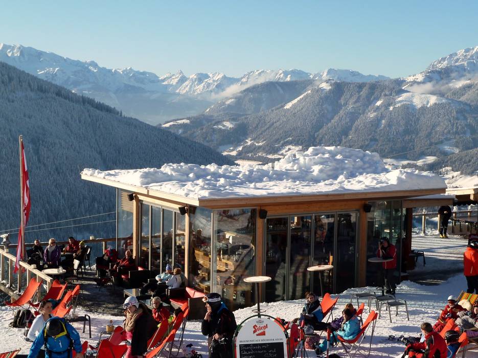 De meest authentieke berghut in het skigebied aan de dalafdaling biedt regionale specialiteiten. Op het zonneterras kun je de skidag ontspannen afsluiten.