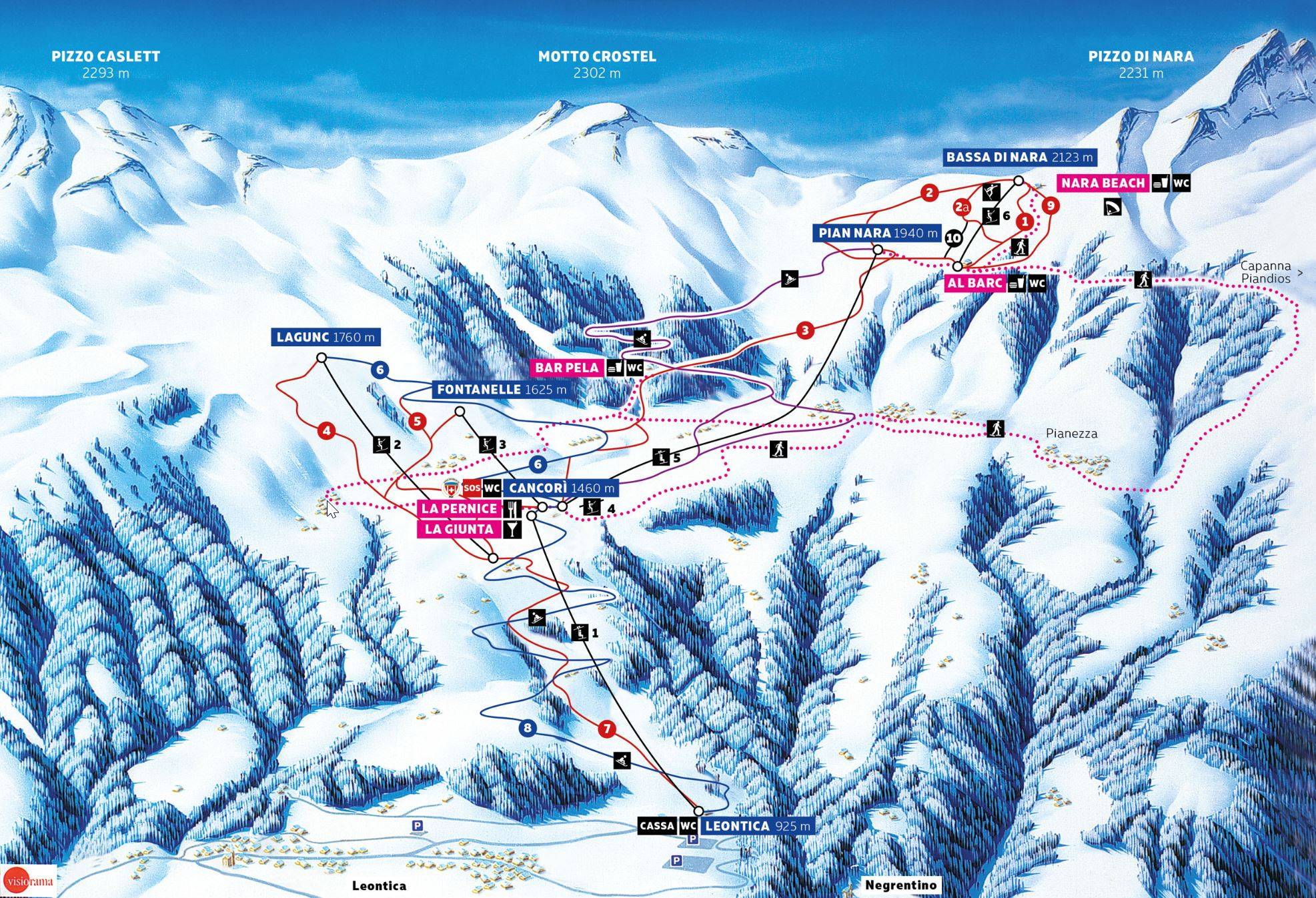 Leontica (0,8 km), Acquarossa (5 km) Plaatsen bij het skigebied