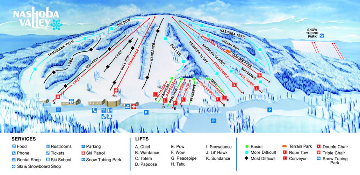 Pistekaart Nashoba Valley seizoen 2024/2025