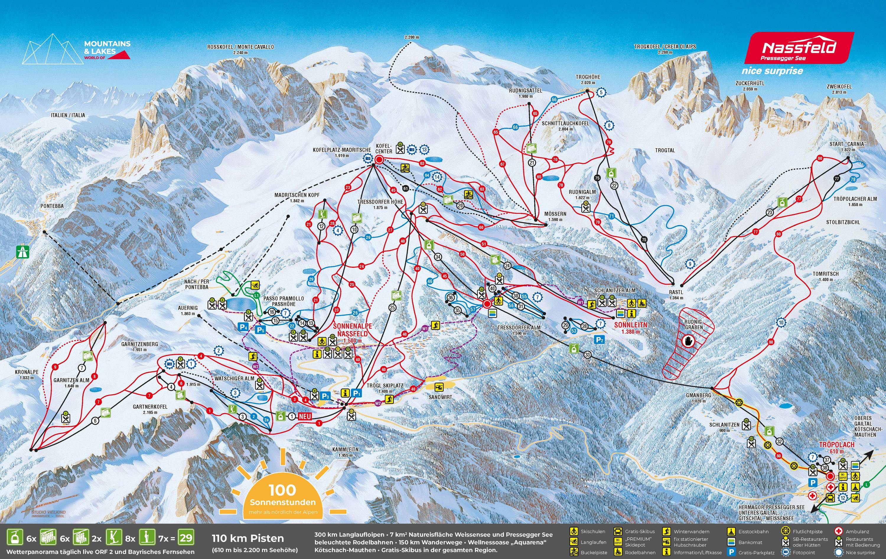 Pistekaart Nassfeld-Pressegger See seizoen 2025/2026