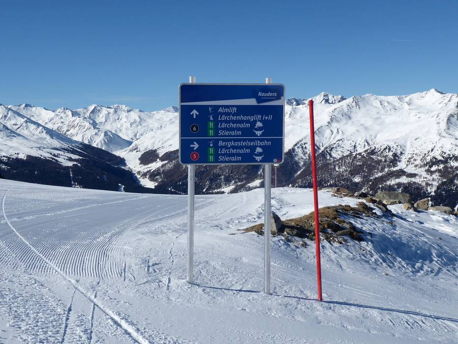 Oriëntatie (pistekaart, informatieborden, bewegwijzering piste) en veiligheid in het skigebied Nauders am Reschenpass – Bergkastel