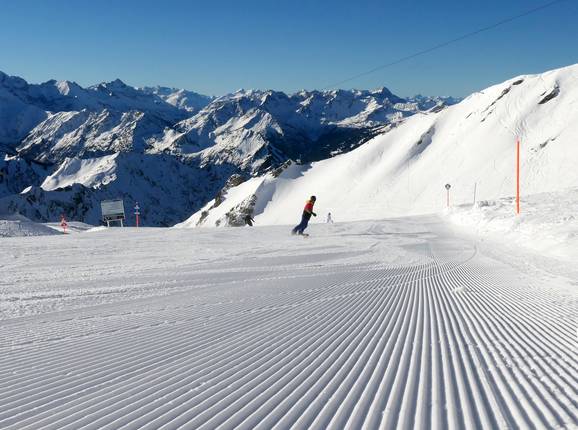 De pistes op de Nebelhorn worden dagelijks met veel inzet in optimale conditie gebracht. Dankzij satellietgestuurde sneeuwhoogtemeting verdelen de pistebully’s de sneeuw optimaal en worden zwakke plekken met weinig sneeuw direct herkend.
