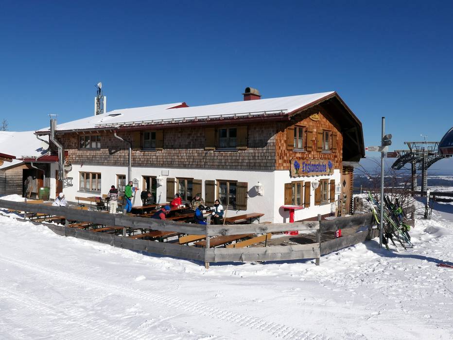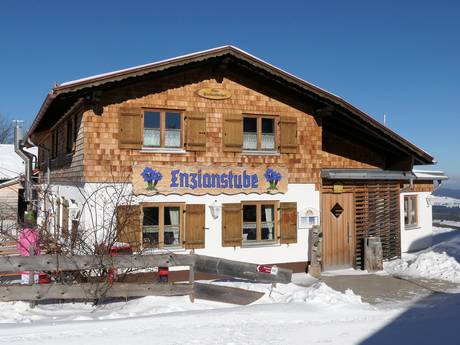 De gezellige berghut verwent je met Allgäuer specialiteiten. Het grote zonneterras en de knusse gastenkamers nodigen uit om te blijven hangen. De Enzianstube is ook geopend tijdens het nachtskiën.