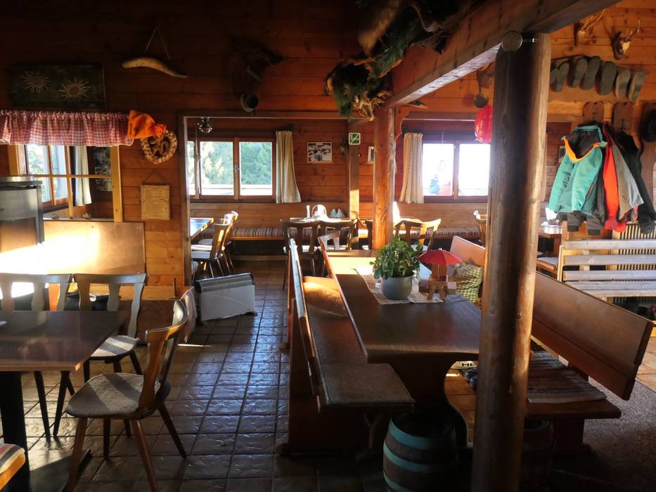 De gezellige Hubertushütte biedt eenvoudige berghutgerechten en regionale specialiteiten. Een houtkachel zorgt voor een knusse sfeer.