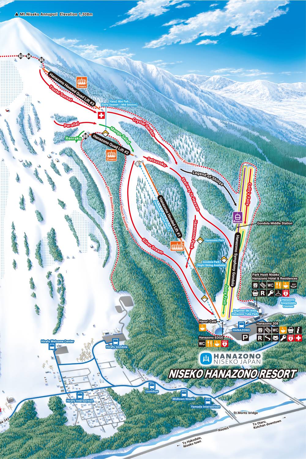 Oriëntatie (pistekaart, informatieborden, bewegwijzering piste) en veiligheid in het skigebied Niseko United – Annupuri/Grand Hirafu/Hanazono/Niseko Village