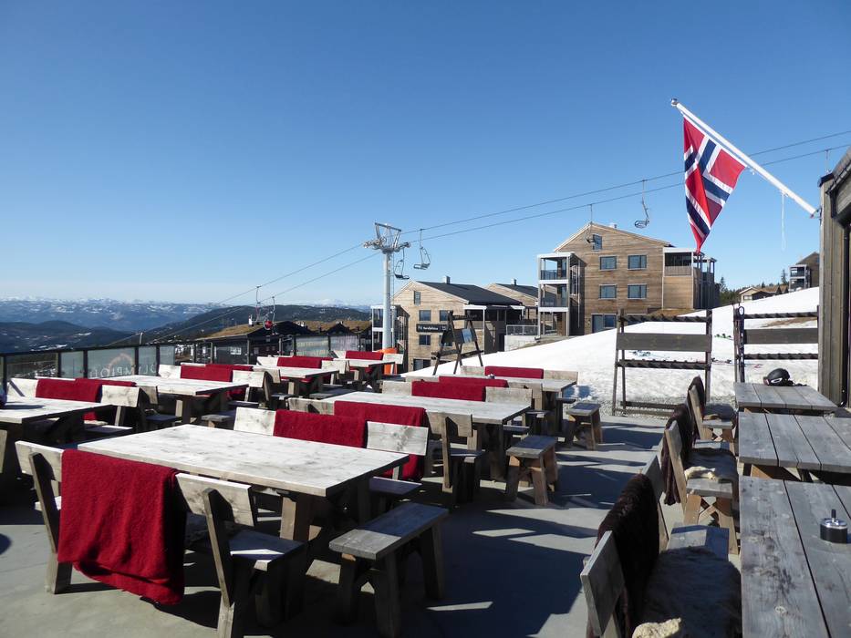 In Norefjell zijn er goede restaurants en hutten verspreid over het skigebied. Vanaf de zonneterrassen heb je vaak een prachtig uitzicht op de bergen en het Krøderenmeer.