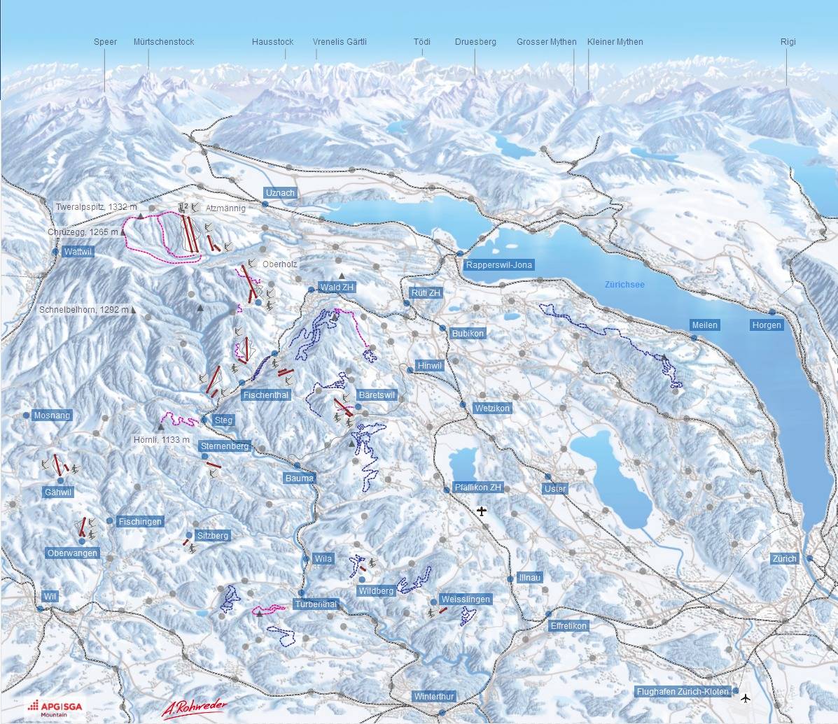 Pistekaart Zürich Oberland seizoen 2025/2026