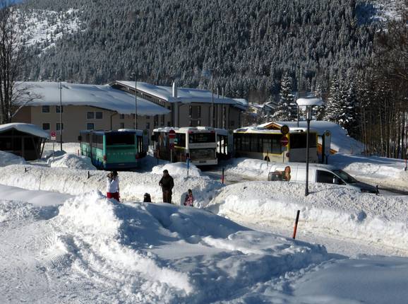 Het dichtstbijzijnde treinstation bevindt zich in Sonthofen en ligt op ongeveer 15 km afstand. Vanuit Sonthofen rijden er tussen 06:00 en 17:30 elk 30 tot 60 minuten bussen naar Oberjoch. - uitgebreid skibusnet