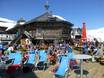 Wie uitbundig wil feesten, is in de Gruber Stadl in Obertauern helemaal op de juiste plek. Overdag is het al gezellig op het zonneterras. ’s Avonds gaat hier zeker het dak eraf!