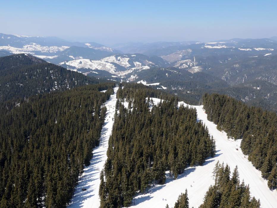 Het skigebied ligt rond de top Snezhanka (1.926 m), die van verre te herkennen is aan de 156 meter hoge televisietoren. Bijna alle stoeltjesliften komen hier op de top aan. Vanaf het uitkijkplatform van de televisietoren heb je een prachtig uitzicht over het skigebied. Pamporovo is verdeeld in meerdere verbonden gebieden, de zogenaamde Ski centers: 1 Avtogara, 2 Malina, 3 Studenets en 4 Stoykite.