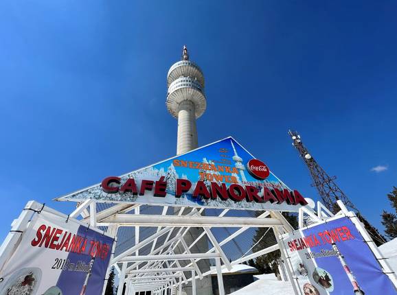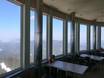 In de televisietoren onder het uitkijkplatform op 2.019 m. De betaalde rit naar boven gebeurt met een lift.