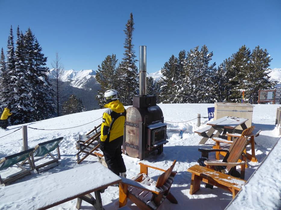 Bij het bergstation van de vierpersoonsstoeltjeslift Summit Quad op 2365 m