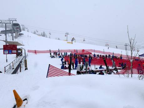 Bij het bergstation van de Red Pine Gondola bevindt zich een oefenterrein van de skischool met een tovertapijt.