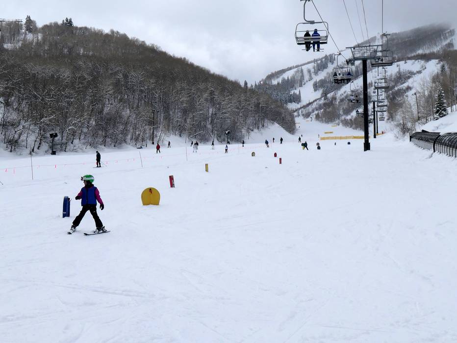 Bij de overdekte transportband Mule Train, net boven het Park City Mountain Village, kunnen kinderen ideaal oefenen.