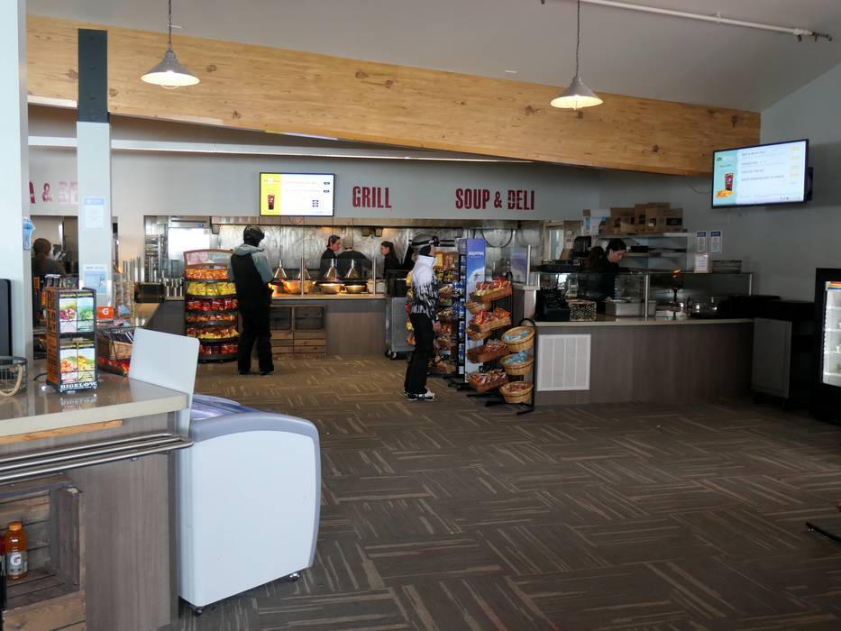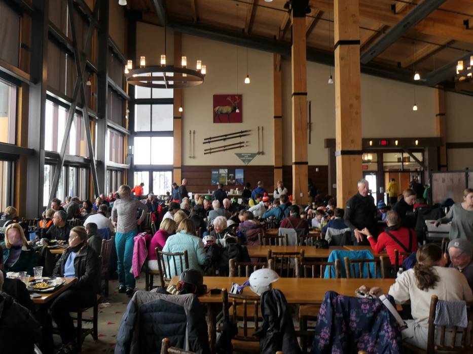 De Red Pine Lodge is een groot zelfbedieningsrestaurant midden in het skigebied.